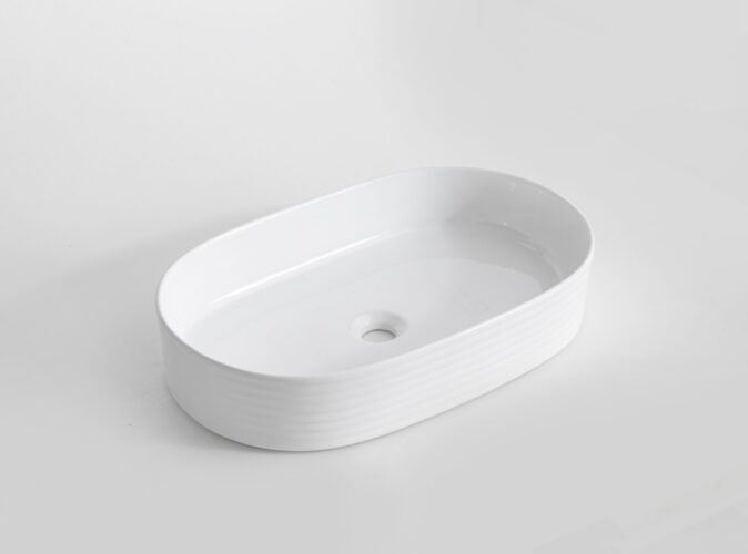Ovia Fluted Pill Oval Rounded Matte White Ceramic Basin