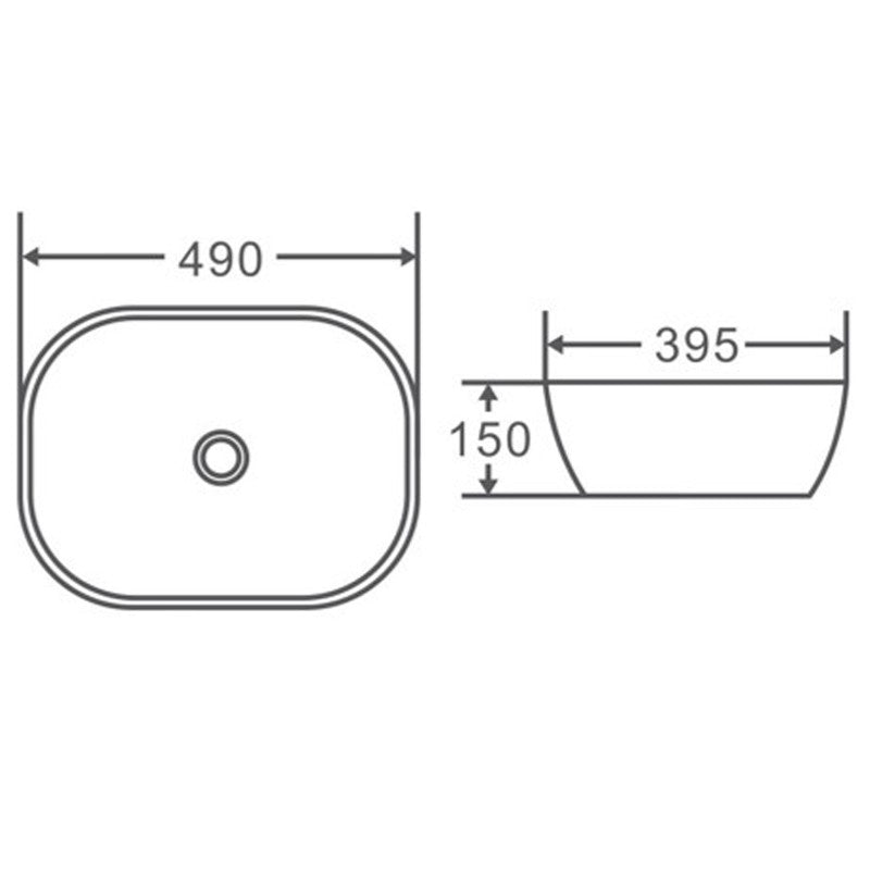490*395*150mm Rectangle Above Counter Gloss White Ceramic Basin Ultra Slim