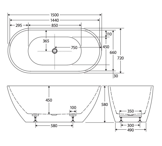 1500mm Freestanding Bathtub Vienna Egg Acrylic Gloss White PREMIUM