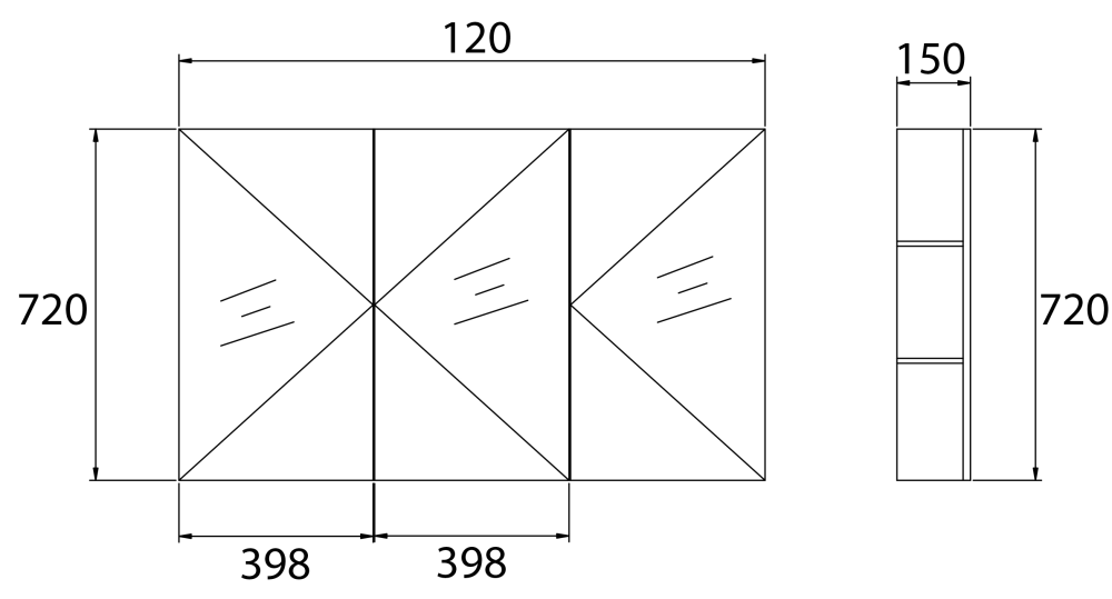 - Mirror Doors: Features 3 mirror doors with DTC soft-close hinges, providing both functionality and quiet operation.