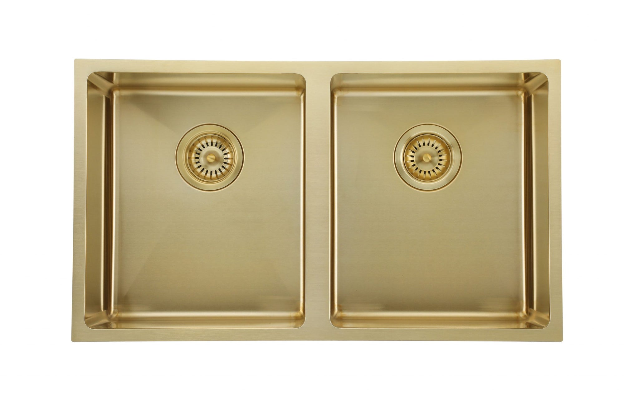 Modern National 760 x 440 x 200 mm PVD Double Bowl Gold Hand made Kitchen Sink 1.2mm Stainless